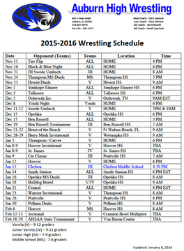26 Jan: 5:30 PM, Varsity @ Prattville Junior High